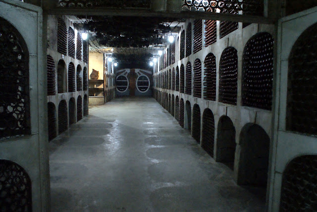 Samo Milestii Mici to - oprócz winnic - ponad 200 kilometrów podziemnych piwnic, w których składowane są niewyobrażalne ilości wina. Wina zresztą nie byle jakiego, bo dostarczanego między innymi na stoły królowej brytyjskiej oraz wielu innych bogatych tego świata. Co ciekawe, istnieje również możliwość przechowywania zakupionego wina w wynajętych kryptach o wyjątkowym mikroklimacie, z której to usługi korzystają m.in. chińscy biznesmeni oraz Pan Prezydent Europy, Donald Tusk. Zakupiona przez nas opcja zwiedzania zawierała degustację lokalnych trunków oraz opiekę przewodnika, lecz cena takiej usługi stanowi ją raczej niedostępną dla większości mieszkańców Mołdawii. Nasz kierowca był więc całkiem zadowolony z obrotu sprawy, bo za jednym razem zaliczył największą atrakcję kraju i odpoczął od mołdawskiego słońca w przyjemnym chłodzie piwniczek z winem. Gdy jednak usłyszał o rozmiarach całego kompleksu, złapał się za głowę i z rozbrajającą szczerością wyznał nam, że gazu w jego bolidzie wystarczy co najwyżej na kilkadziesiąt kilometrów. Na szczęście dla niego, zdecydowana większość podziemnych alej jest niedostępna dla zwiedzających, aby turyści nie stresowali niepotrzebnie leżakujących win i nie zanieczyszczali powietrza spalinami. Ostatecznie nasza wycieczka zakończyła się bardzo przyjemną konsumpcją miejscowych specjałów i przez moment mogliśmy poczuć się jak prawdziwi bogaci turyści z Zachodu.
